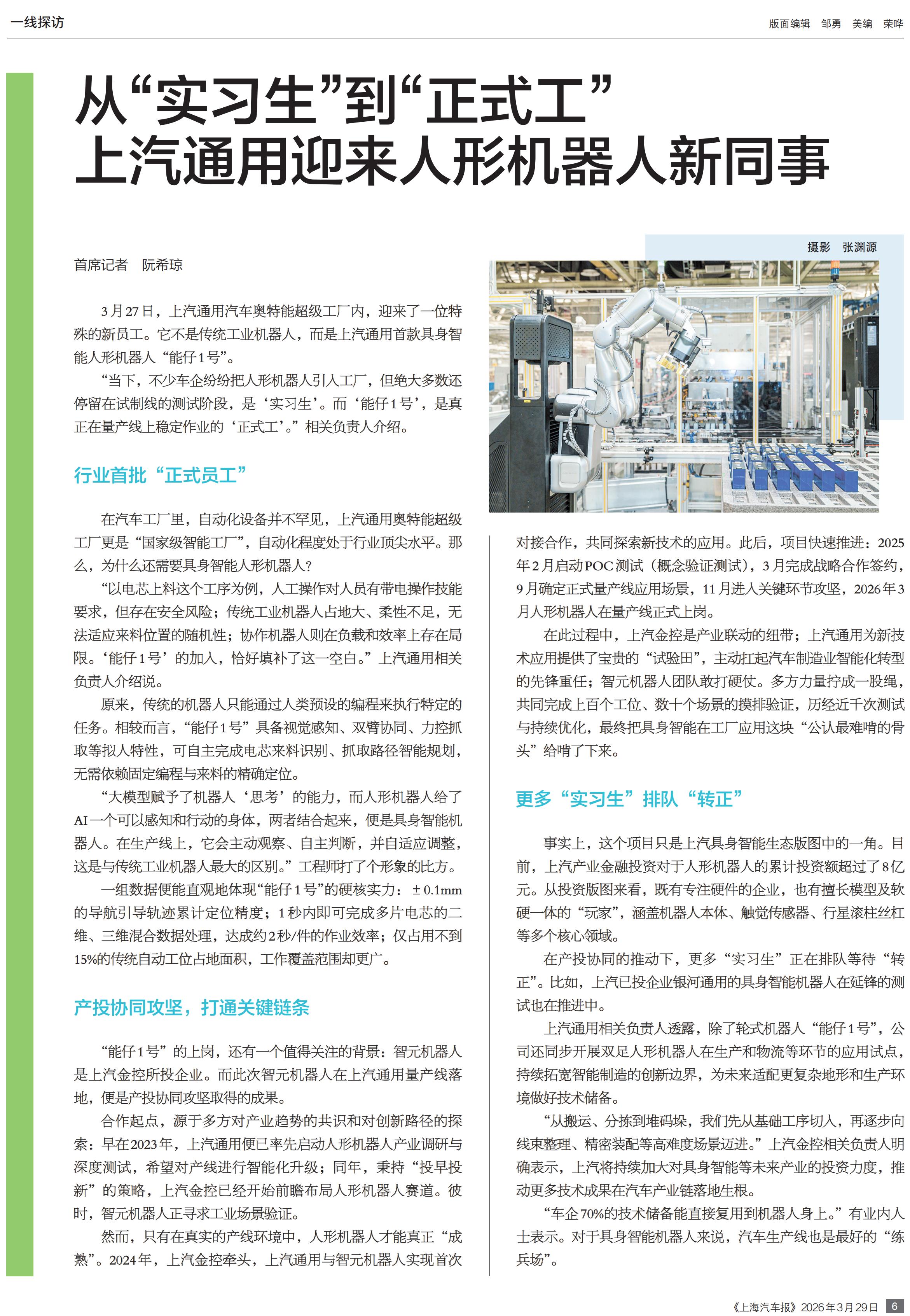 上汽通用迎来人形机器人新同事