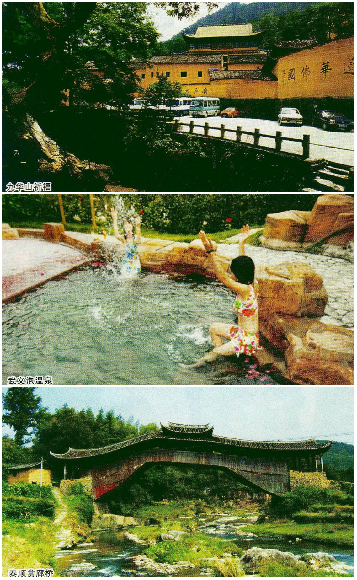 九华山:中国四大佛教名山之一,地藏菩萨道场,首批国家重点风景名胜区。九华山是一幅清新自然的山水画卷。处处有景,移步换景,清代概括有“九华十景”。对外开放后,新辟八大景区,百余处新景点。新老景点交相辉映,自然秀色与人文景观相互融合,加之四季分明的时景和日出、晚霞、云海、雾凇、雪霰、佛光等天象奇观,美不胜收,令人流连忘返。素有“东南第一山”“江南第一山”之誉。