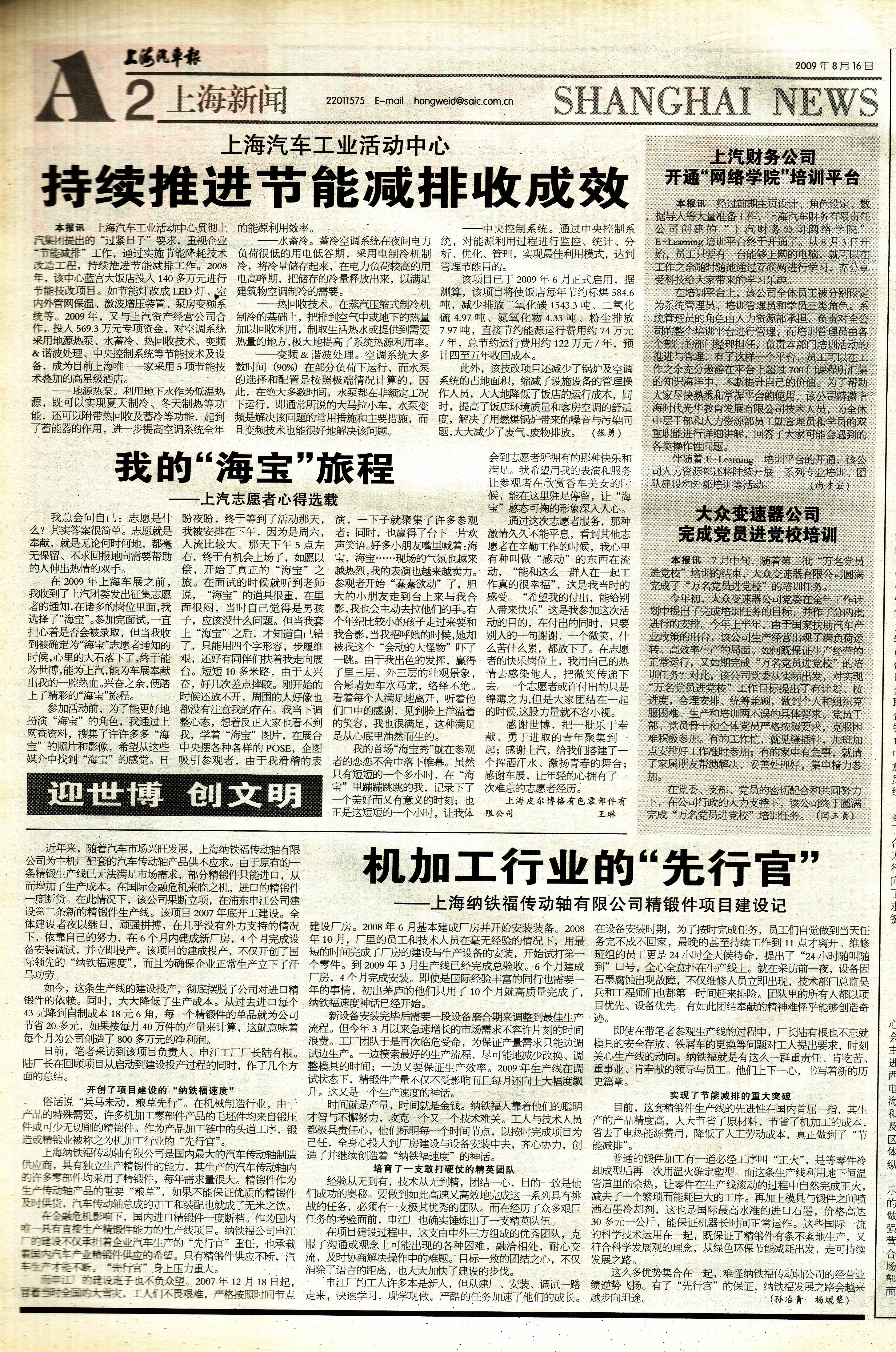 上海汽车报首页 被评为国家创新型试点企业 上汽自主品牌何以渐入佳境? 上海纳铁福技术中心揭牌 申雅公司荣膺市科技“小巨人”企业 为上海世博会打造新一代燃料电池车 南京浦口基地信息系统成功上线