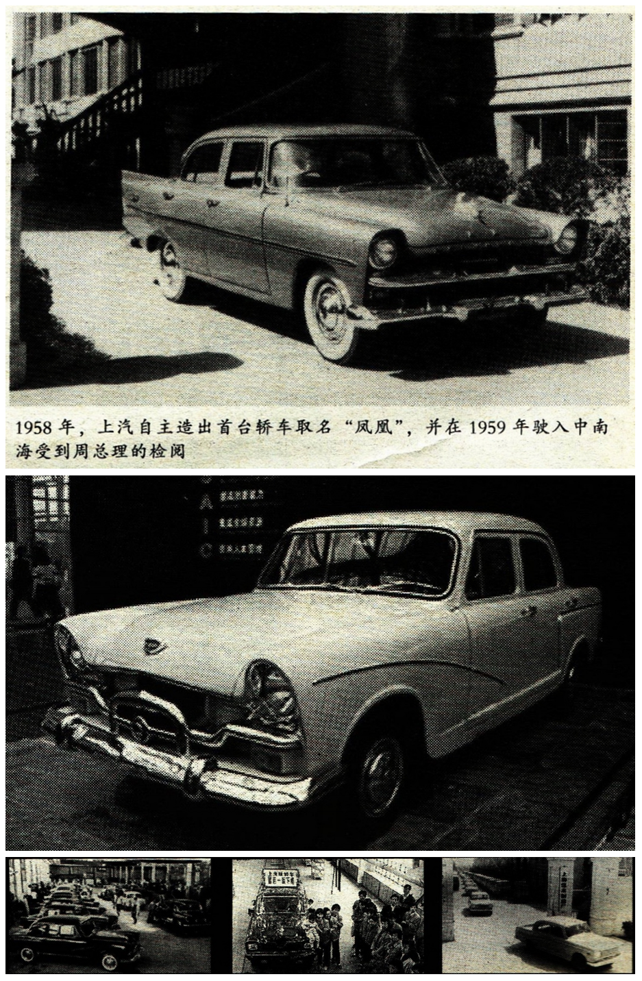 在困难的情况下,公司所属各主机厂和配套厂迅速掀起了一场领导干部、工人、技术人员三结合“土”法上马,大搞技术革新,自己武装自己攻克技术质量关键的群众运动。上海汽车底盘厂承担前后悬挂和转向机等18个总成的制造任务,特别是循环球式转向机的转向蜗杆精度要求特别高,他们自制用精密蜗杆直接传动(消除了齿轮传动的积累误差)的专机造出蜗杆,9攻克了转向机制造的难关,只花了7个月时间,完成了全部总成试制。上海内燃机配件厂承担精密度要求很高的6缸发动机试制,他们坚持“三结合”,开展技术革新,不断攻克技术难关。样机试造出来后,在试车中功率达不到要求,有经验的老师傅经过反复研究,摸索出相位角度规律,革新成功刻度盘,使整机功率等指标达到设计要求。上海郑兴泰汽车机件厂和公司技术科科长魏仲根一起对螺旋伞齿轮反复进行理论研究、参数计算,结合操作,经过无数个日夜的奋战,轿车螺旋锤型伞齿轮终于试制成功。本厂工人同志们自行设计制造了车身焊接拼装台,攻克了车身焊接精度关,在不到5个月的时间里,完成车身试制和总装。第二轮试制的凤凰轿车终于在9月28日试制成功,参加了上海市国庆10周年游行,接受市领导和各界观礼代表的检阅。