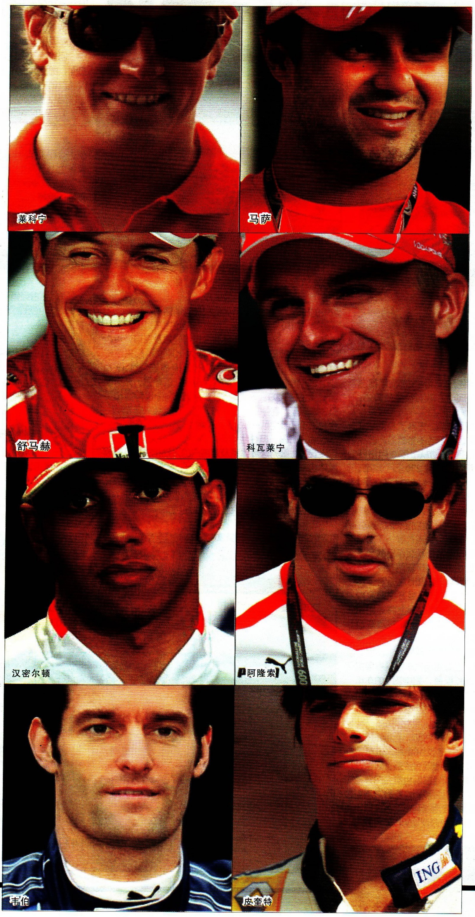 如果你现在无法在脑海中勾勒出这些车手的形象,抑或是你有模糊的记忆,却无法想象出他们的脖子,那么,请你在网络上搜索一下他们的图片吧。也许其中身材偏瘦的舒马赫的脖子粗得不是那么明显,但如果看看巴顿、韦伯、马萨、科瓦莱宁,或者前面提到的阿隆索,以及“美男”莱科宁,那就显而易见了。