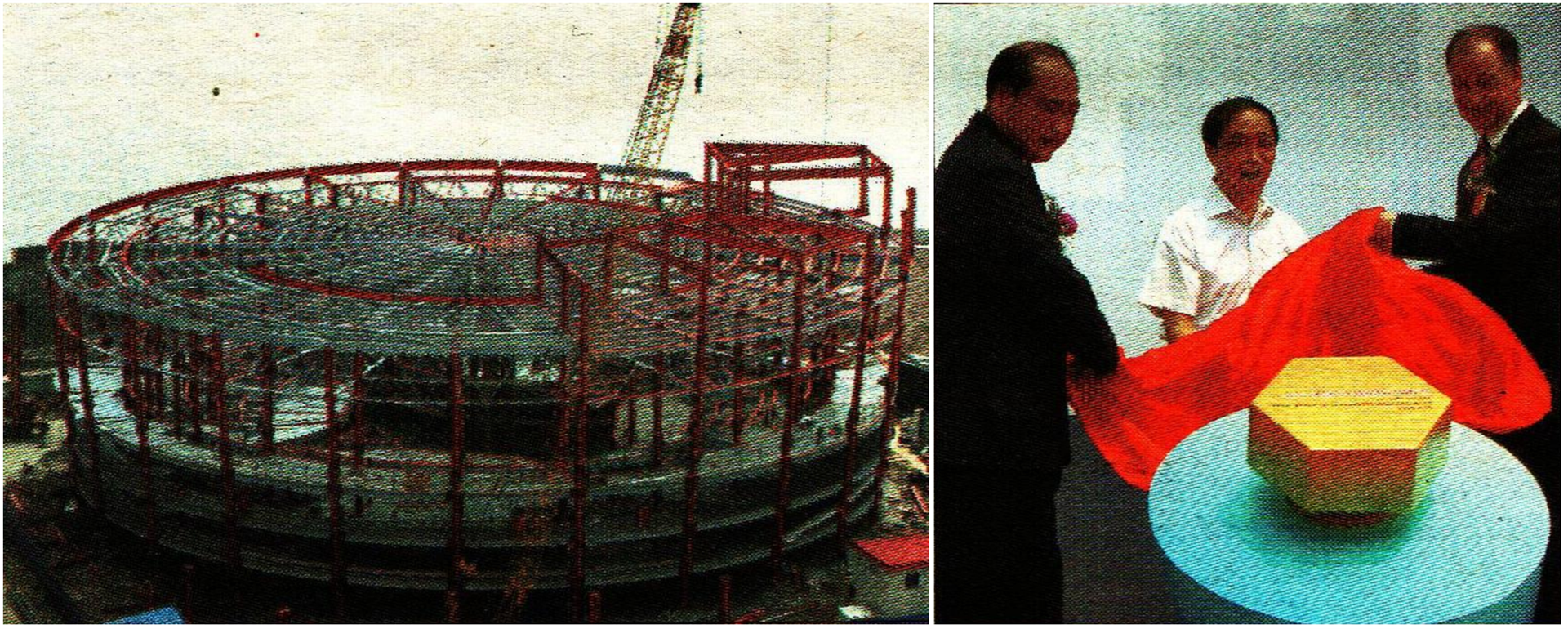 右下图为许伟国、肖国普和甘文维为最后一颗螺钉揭幕。(张渊源 摄影报道)