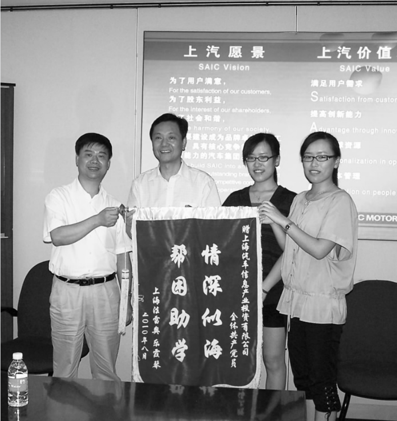 金秋开学之际,上海汽车信息产业投资有限公司迎来了几位客人,她们是该公司全体党员帮困助学7年、今年刚刚踏上工作岗位的一对双胞胎姐妹和她们的妈妈。她们在上海法雷奥公司党委书记兼工会主席李新华等陪同下,将一面写有“帮困助学,情深似海”的锦旗送到了上汽信息公司党支部副书记李爱国手中,以表达她们的感激之情。