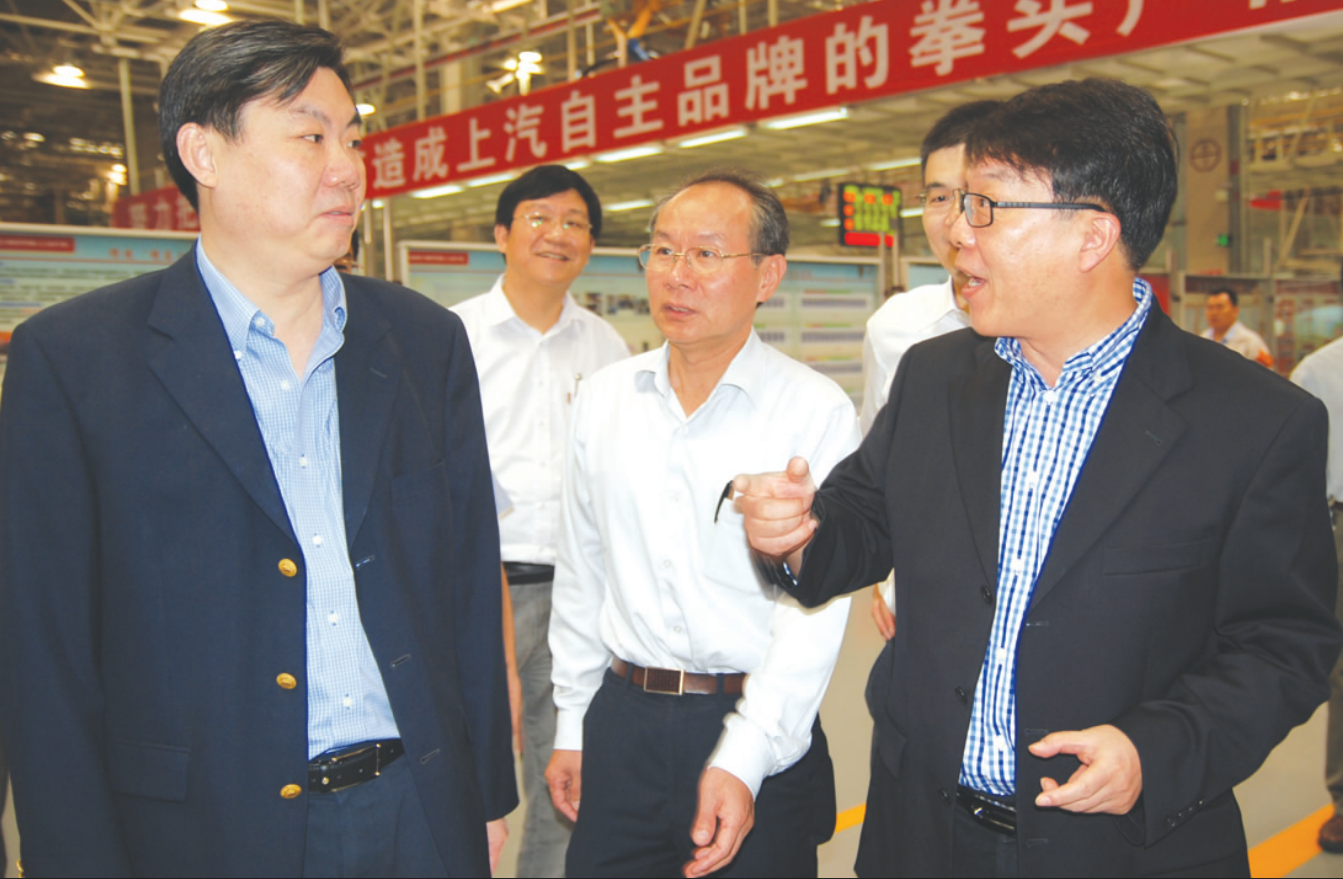 又讯 9月28日,陈虹在上海汽车执行副总裁、乘用车公司总经理陈志鑫等陪同下,在南汽浦口基地再次试驾了荣威350产品,并听取销售和质量部门对产品的情况汇报。陈虹要求南汽以精益为指导,严格质量检查,打造上汽自主品牌的拳头产品。图为陈虹(左)在听取陈志鑫(右)介绍情况。(李玉龙 刘豫宁 摄影)