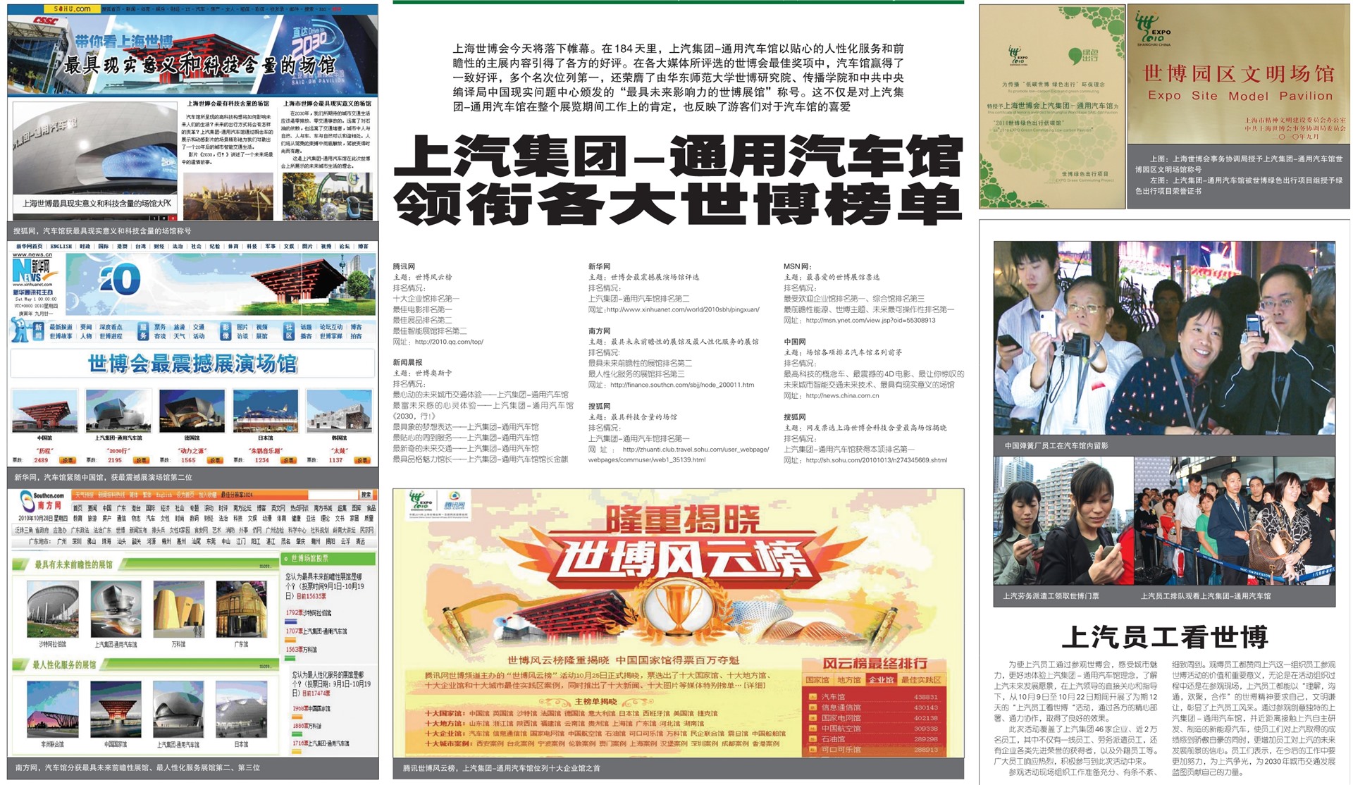 上海世博会今天将落下帷幕。在184天里,上汽集团-通用汽车馆以贴心的人性化服务和前瞻性的主展内容赢得了各方的好评。在各大媒体所评选的世博会最佳奖项中,汽车馆赢得了一致好评,多个名次位列第一,还荣膺了由华东师范大学世博研究院、传播学院和中共中央编译局中国现实问题中心颁发的“最具未来影响力的世博展馆”称号。这不仅是对上汽集团-通用汽车馆在整个展览期间工作上的肯定,也反映了游客们对于汽车馆的喜爱