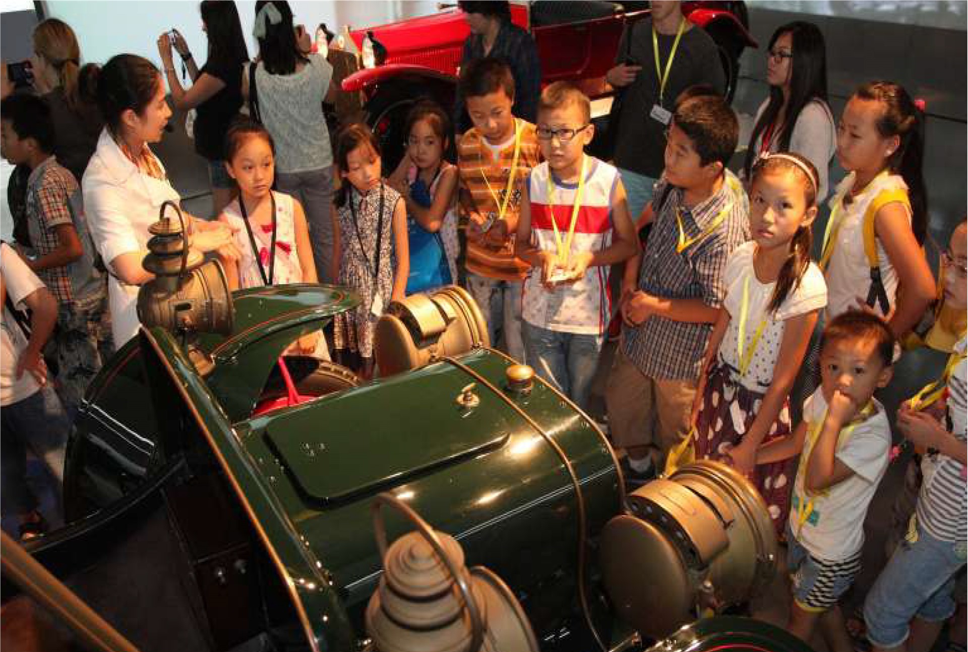40名“铺路石”的孩子们在20名来自美国加利福尼亚州的大学生志愿者的带领下,参观了馆藏的近百辆古董车。上海汽车博物馆还特别为这些孩子们设计了“趣味寻宝”的互动游戏和老爷车拼图的纪念品。