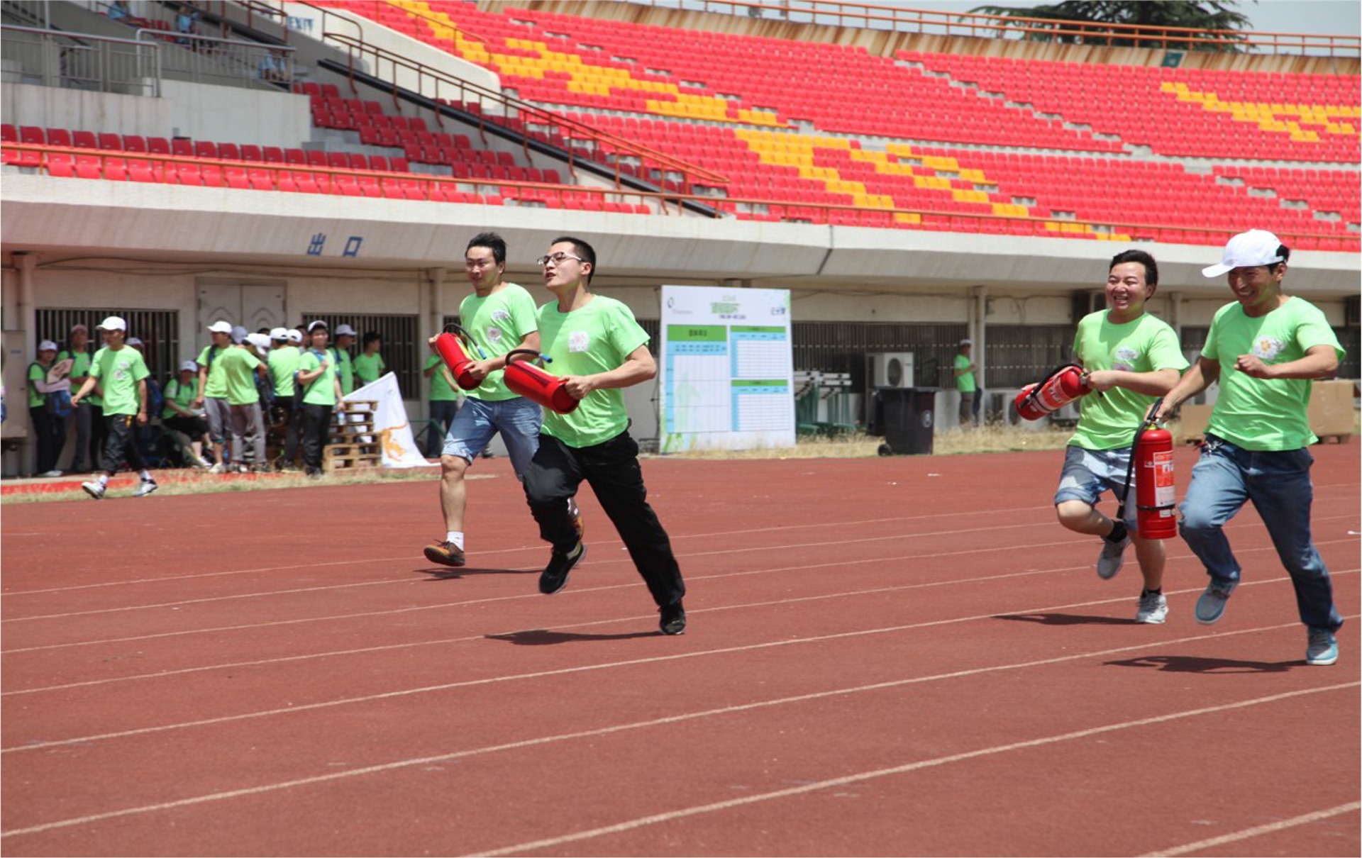 这是一场别出心裁的趣味运动会,现场除了有50米赛跑、消防安全接力赛这样的常规比赛项目外,企业还特别设置了大闯关趣味赛事。消防安全接力赛模拟火灾现场,选手们依次带着安全栓、灭火器向正在着火的终点出发,在最快时间里成功灭火的便获得冠军。在“趣味大闯关”部分,“勇者巅峰”“竞速龙舟”“众星捧月”等众多趣味团队项目受到欢迎,比赛现场模拟游乐园,选手们要在柔软的赛道上匍匐前进、钻洞过关,还要举起充气大气球齐力奔跑,在最快时间里完成任务的就是冠军。这些别出心裁又考验团队合作的小游戏让选手们乐在其中。