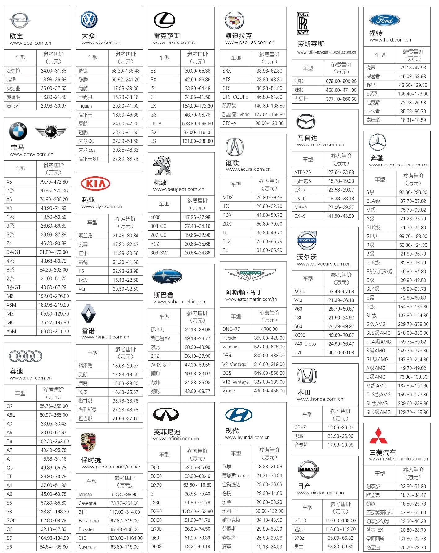 近期上海部分进口车参考报价