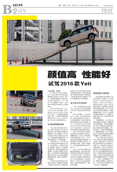 作为一款高性能的硬派SUV,2016款Yeti不仅拥有硬朗个性外观,更有出色的动力操控性能。