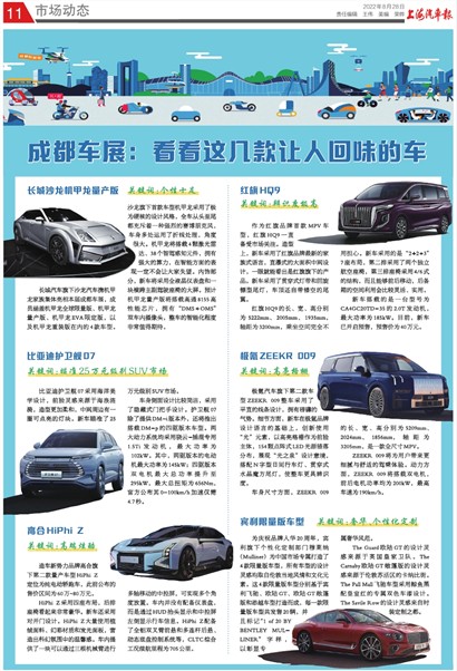 长城汽车旗下沙龙汽车携机甲龙家族集体亮相本届成都车展,成员涵盖机甲龙全球限量版、机甲龙量产版、机甲龙EVA限定版,以及机甲龙重装版在内的4款车型。沙龙旗下首款车型机甲龙采用了极为硬核的设计风格,全车从头至尾都充斥着一种强烈的赛博朋克风,车身多处运用了折线处理,角度很大。机甲龙将搭载4颗激光雷达、38个智驾感知元件,拥有强大的算力,在智能方面的表现一定不会让大家失望。内饰部分,新车将采用全液晶仪表盘和一块横跨主副驾驶座椅的大屏。预计机甲龙量产版将搭载高通8155高性能芯片,拥有“DMS+OMS”双车内摄像头,整车的智能化程度非常值得期待。