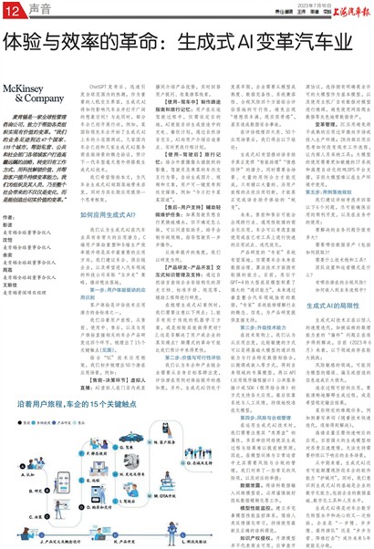 我们希望借助本文,为汽车业生成式AI短期落地带来启发,同时为其长期应用提供一个思考框架。