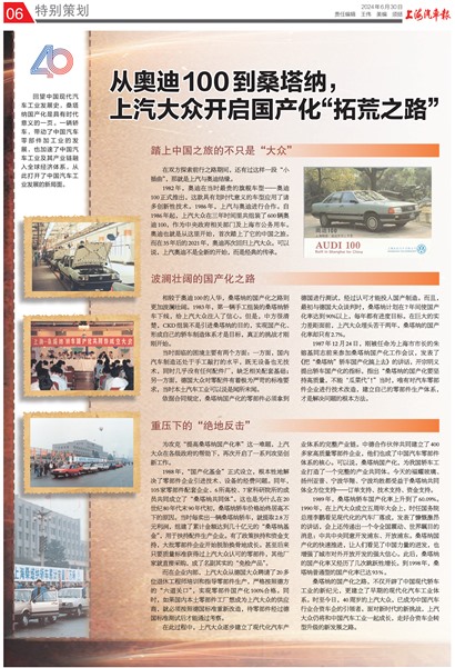 回望中国现代汽车工业发展史,桑塔纳国产化是具有时代意义的一页。一辆轿车,带动了中国汽车零部件加工业的发展,也加速了中国汽车工业及其产业链融入全球经济体系,从此打开了中国汽车工业发展的新局面。